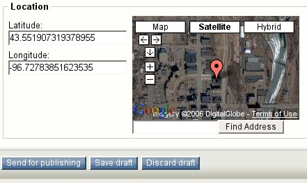 This extension provides the GMaps Location datatype, which allows you to easily enter Latitude/Longitude data into eZ Publish using Google Maps as an entry method.